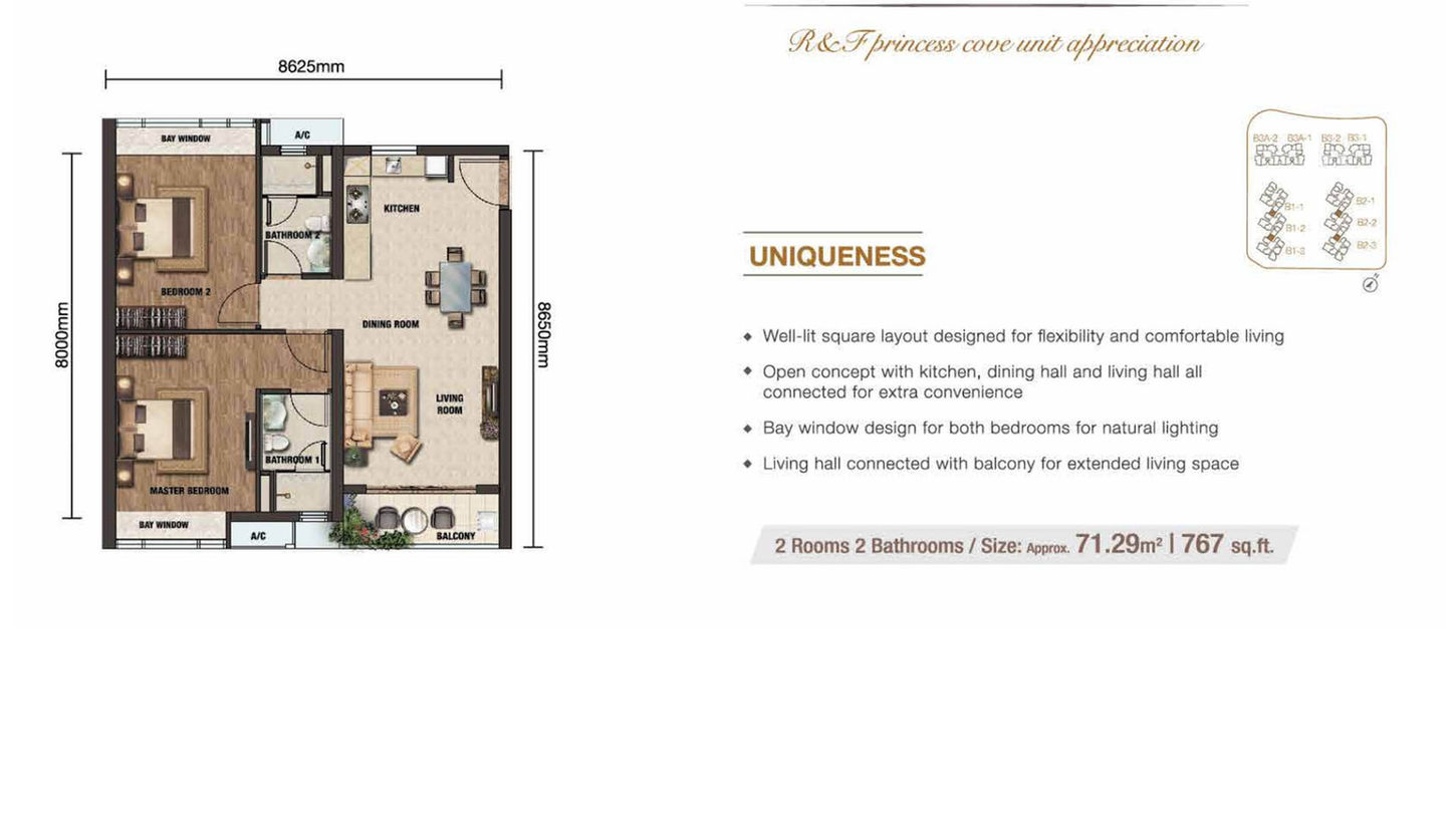 R&F Princess Cove offers a diverse range of unit types, ensuring there's a perfect match for everyone. Whether you're living alone, have a small family, or need ample space for a large family, R&F has tailored options to meet your specific needs.